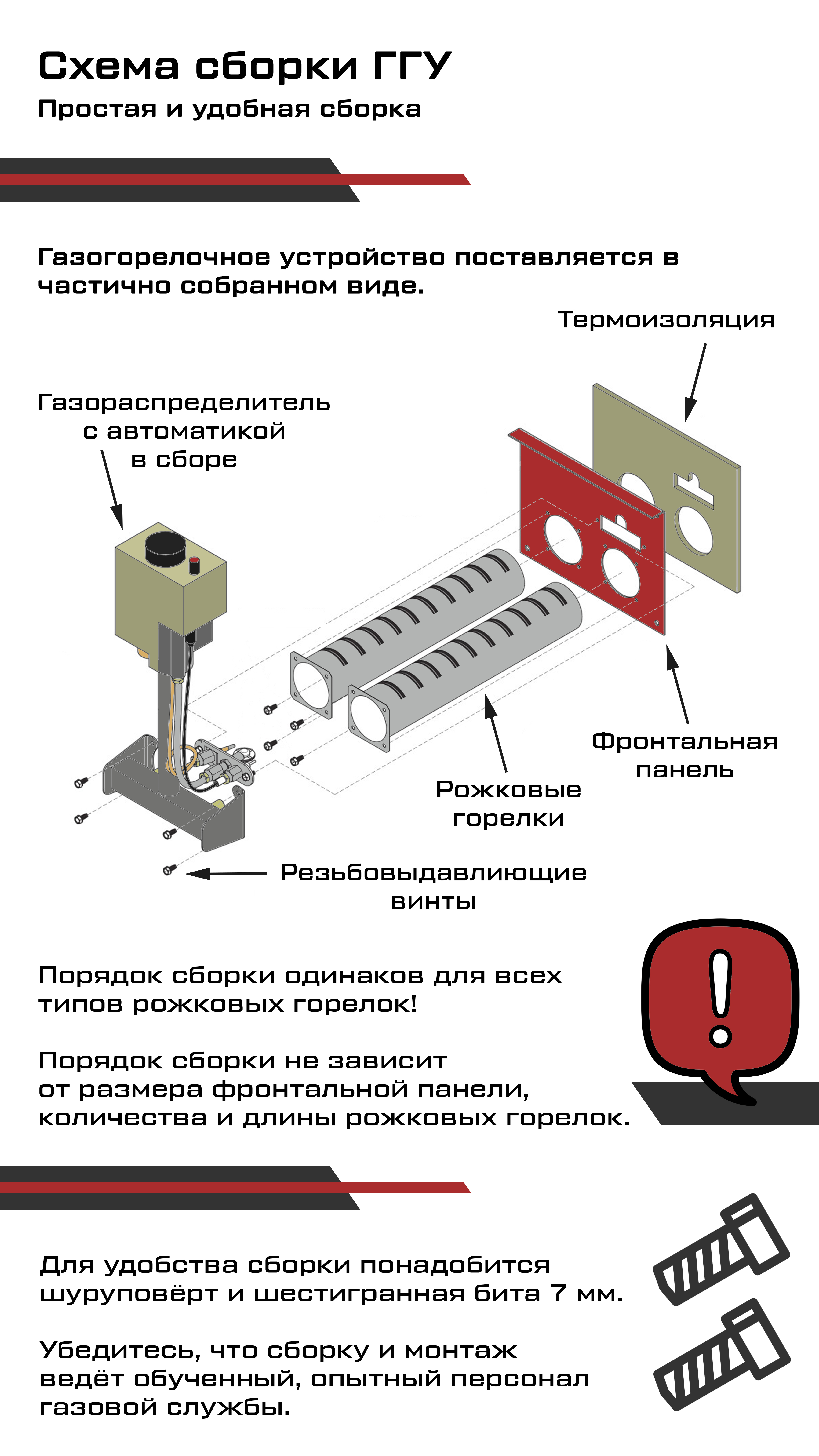 Применимо для работы на природном или сжиженном газе. Для перехода на сжиженный газ устанавливаются сопла и инжектор с соответствующим диаметром отверстия.