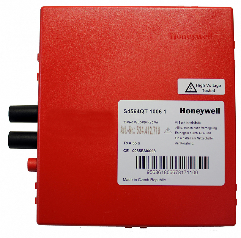 Топочный автомат S4564QT 1006 Honeywell обеспечивает безопасный программируемый розжиг, контроль пламени и регулирование потока газа к главной и/или пилотной горелке отопительной установки.